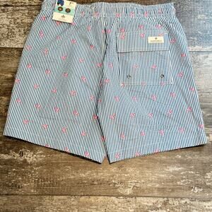Rainforest Stripe Flamingo Print Seersucker 7" Swim Trunks Mens Size Small NWT