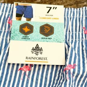 Rainforest Stripe Flamingo Print Seersucker 7" Swim Trunks Mens Size Small NWT