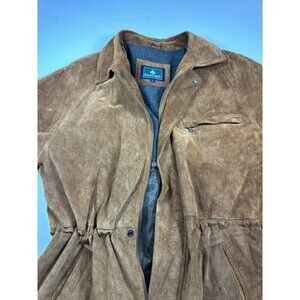 Rainforest Suede Coat Jacket Brown Large Zipper Snap Closure Drawstring Waist