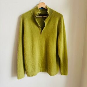 Rainforest Women's Large Cashmere Sweater Green Quarter Zip Mock Neck NWOT