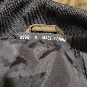 Very good pre-owned condition. A few spots near the cuffs, and one near bottom of front, near zipper. I didn't try to clean.