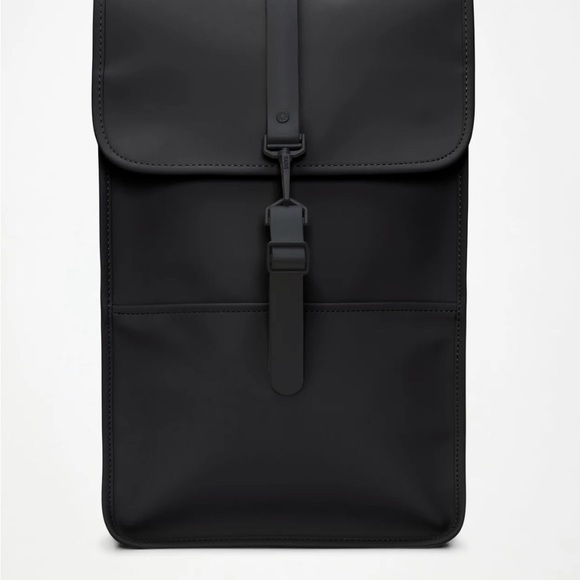 Backpack is cut from Rains' signature PU fabric, engineered for carrying strength, durability and a smooth feel.