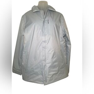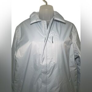 New with tags — Rains Fuse Overshirt in rare discontinued sky blue. Size Small. This versatile piece can be worn as a lightweight jacket or an overshirt. Features light insulation, concealed zip front, and welt hand pockets for a clean, modern look. Perfect for transitional weather or layering.