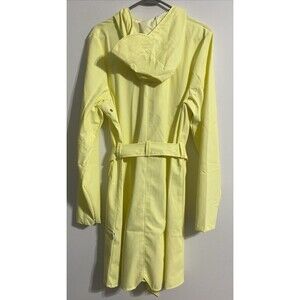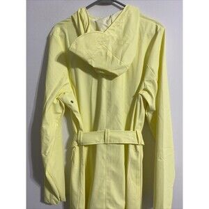 Rains Jacket Curve W Women's L Yellow Snap Button Front Closure Snap Pockets Hooded Tie Belted NEW. New with tags! Please see all pictures. 100% polyester.