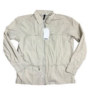 Rains Jacket WMNS XL Cement Full Zip Collar 18690 Woven Athletic Shirt Pockets