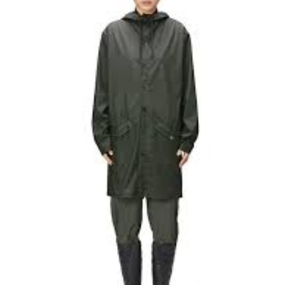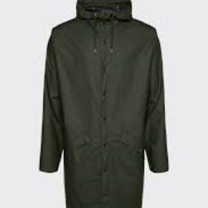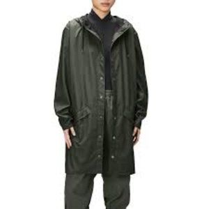 Rains Long Green Jacket; Unisex Size XXS/XS