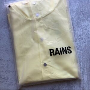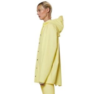 Rains Rain Jacket Unisex Yellow Straw Hood Cap Snap Front Size XL