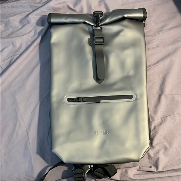 Rains Rolltop Rucksack Backpack in Metallic Grey
