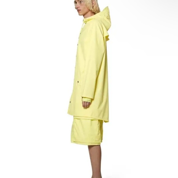 Cut from Rains' signature PU fabric and features ultrasonically welded seams. The finish is lightweight with a soft feel and elegant drape.