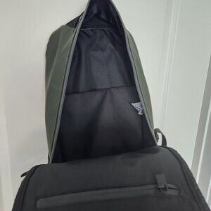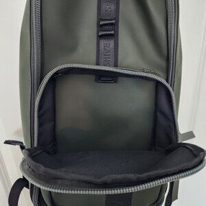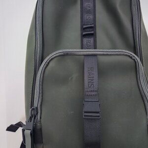 Trail Waterproof Backpack from the outerwear lifestyle brand, Rains, in the color Olive green. Keep your essentials dry on any adventure in this waterproof backpack perfect for your commute or outdoor jaunts.