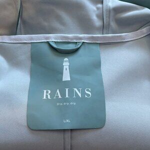 Rains Unisex Light Green Waterproof Hooded Longline Jacket - Size L / XL