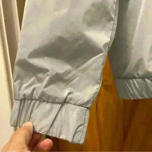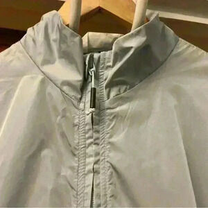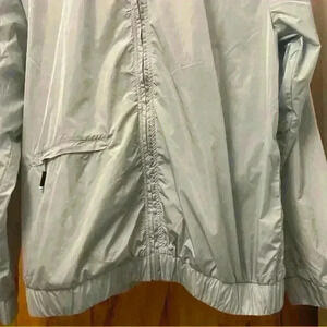 Rains unisex track jacket in sky blue. This jacket features a standup collar, elastic waist, and a zipper pocket for added convenience. The softshell fabric is breathable and lightweight. The jacket is machine washable, and comes in a size small. Suitable for walking, golf or any other activity. The solid pattern and relax fit make it a stylish and comfortable choice for any occasion. NWT