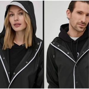 Rains Unisex Waterproof Long Reflective Jacket in Black Size L