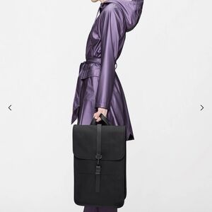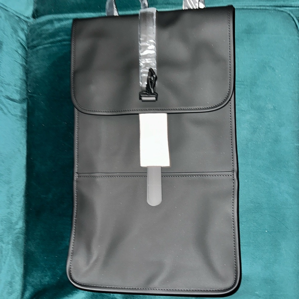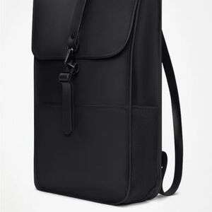 Sleek black backpack designed for everyday use. Smooth, water-resistant exterior with a secure flap closure. Clean, minimalist silhouette that pairs well with work and casual outfits. Lightweight and easy to carry.