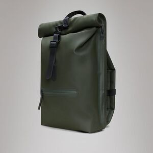Rolltop Rucksack is cut from Rains' signature PU fabric, engineered for carrying strength, durability and a smooth feel.
