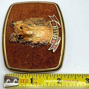 Raintree 1979 Collie Dog Belt Buckle Metal & Faux Leather Design Vintage