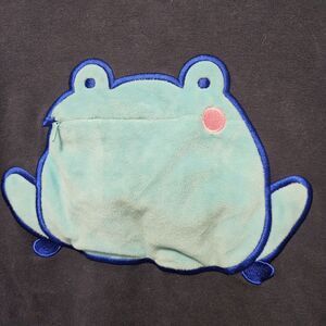 This item is a cozy, unisex hoodie with a soft interior, featuring a very large Son the Frog in the middle. Unzip Son's mouth to reveal his tongue. If your current situation does not call for tongue, you may zip it up and put it away.