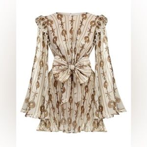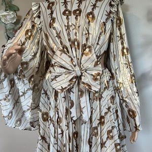 Raisa Vanessa Metallic Seashell Chiffon Long Sleeve Dress