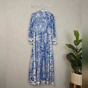 This maxi dress showcases a lavish paisley print in warm hues, exuding a sophisticated yet free-spirited vibe. The high neckline, and long sleeves make it a comfortable choice for both day and evening wear. Infuse your wardrobe with the vibrant, carefree spirit of the Maya Dress.