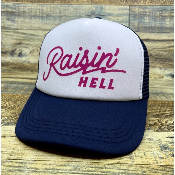 Raisin' Hell Unisex Trucker Hat Navy Cowgirl Country Western Baseball Cap