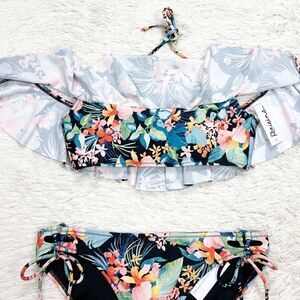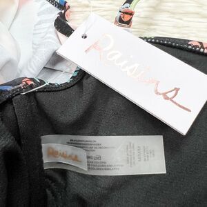 Brand new with tags Raisins Coconut Grove Black Tropical Bikini Size Medium. Off Shoulder bikini top with removable halter spaghetti straps. Full coverage bikini bottom with side ties.