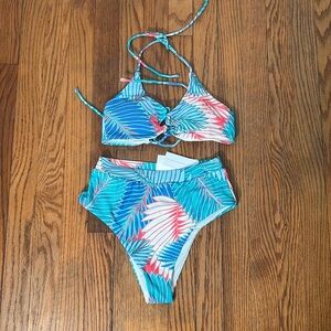 Raisins Costa Strappy Top High Waisted Bottom Bikini Set Palm Blue size s NWT