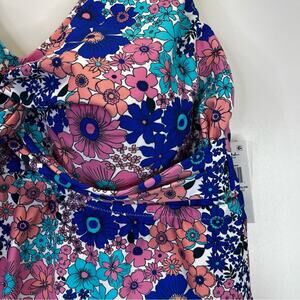 Raisins Curve Lucia Tummy Control Swim Dress in multicolor. Designed with a V-neckline. The non-removable cups offer gentle support, while the tummy control feature smooths and flatters the figure. With a pull-on design and secure shoulder straps, it ensures ease of wear and a customizable fit. Fully lined for added comfort.