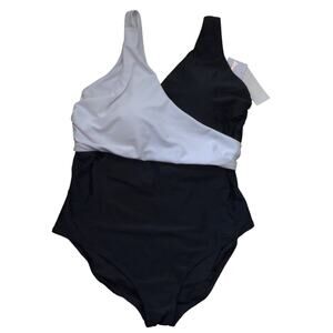 Raisins Curve Plus Size Faux Wrap One Piece Swimsuit Black White 20W New