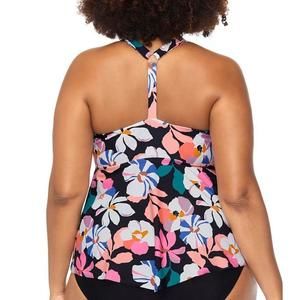 Raisins Curve Trendy Plus Size Multicolor Floral Underwire Tankini Top 24W