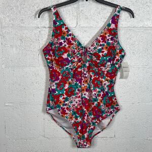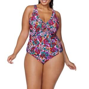 Raisins Curve Trendy Plus Size Muna Floral 1 Piece Swimsuit 18W Red