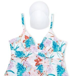 Raisins Curve Underwire Tankini Aries Twist Front White Swim Top Floral Plus 24W