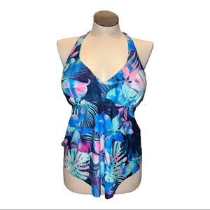 Raisins Curve Trendy Plus Size Vieques Trinadad Printed Tankini Top Blue 16W NWT