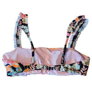 NWT Bandeau flounce bikini top. Bright pink and orange tropical floral print. Adjustable straps for maximum fit control.