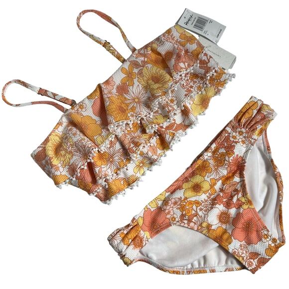 Raisins Girls Orange Multicolor Floral Print Turtle Bay Set Two Pie Swimsuit Size 16