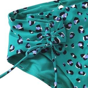 Raisins Green Blue Leopard Side Ties Hipster Bikini Swim Bottoms Large NWT