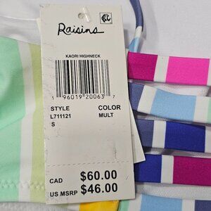 Bold stripes make a statement in this fierce juniors' bikini top from Raisins.