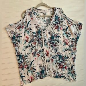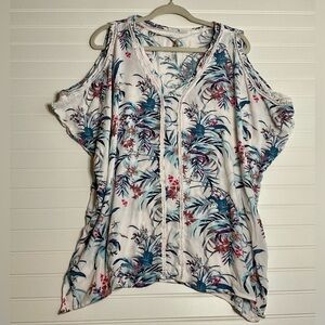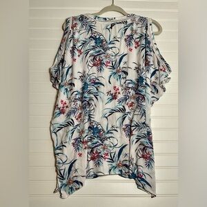 • Cold shoulder cutouts; handkerchief hem