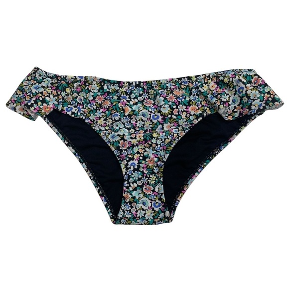 Raisins Sophia Ditzy Floral Print Ruffled Bikini Bottoms Black XS New Reticket