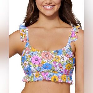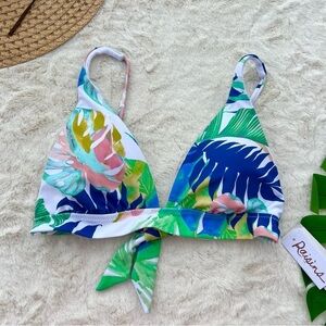 The beautifully textured Island bikini top from Raisins is a playful swim look designed with a tropical-inspired print.