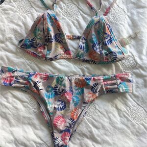 Raisins Bikini Set. Sea shell print. Super cheeky bottoms and triangle top. Strappy in back. Size Medium