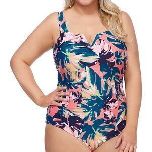 Bring on the tropical vibes with Raisins Curve's lushly printed one-piece plus size swimsuit, styled with a notched V-wire neckline for added dimension.