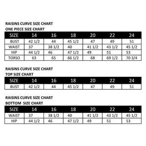 Raisins Curve's chic plus size bikini features a whimsical mix of contrasting prints on a chic V-wire neckline top and a retro-inspired high-waist bottom accented by a playful sash at the waist