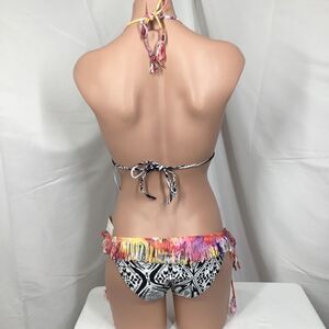 Raisins Printed Slide Bra Bikini Set With Fringe E