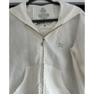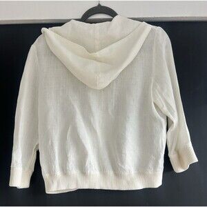 Raison D'etre Ladies White 100% Linen 1/2 Sleeve Hoodie Jacket with Zip Size M