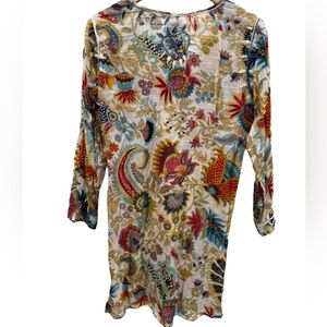 Raj Cotton Embroidered Floral Multicolor Lightweigt Tunic Top Medium