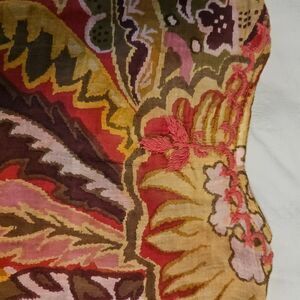 This gorgeous bohemian, ethnic-inspired children's tunic with a vibrant, intricate pattern featuring shades of red/orange, yellow, green, and pink is a show stopper. The design has a floral abstract pattern and has delicate embroidered detailing around the neckline in a matching coral color, adding texture and a decorative touch along with the button enclosure. Gentle slits on the side allow for extra movement for busy toddlers. The fabric is 100% cotton and very lightweight and flowy. This piece will definitely set your little one apart!