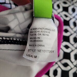 Raj NEXT womens Medium black white geometric padded adjustable swim dress summer pool beach vacation cruise Good Preowned Condition May show normal wash wear color may appear differently depending on light see pics for measurements 85% nylon 15% spandex