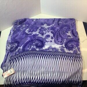 Raj Silk Chiffon Scarf One Size w/Tags Paisley Print Purple/White