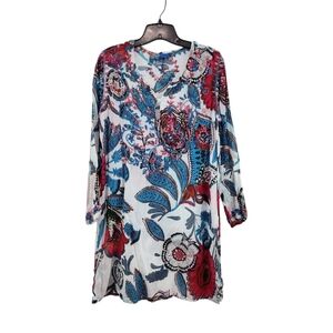 Raj Women's 100% Cotton Embroidered Paisley Tunic Swim Cover Up Lightweight