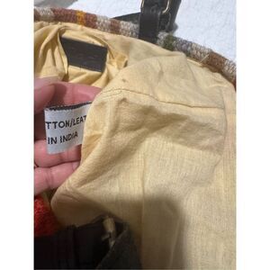 Raj southwest Aztec print wool leather straps saddle blanket tote bag boho